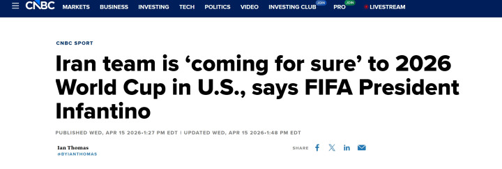 综合多家外媒消息,国际足联主席詹尼·因凡蒂诺4月15日接受美国媒体CNBC采访时再次周三重申,他将致力于推动伊朗参加今年晚些时候在美国举行的世界杯,尽管两国之间的战争仍在持续。然而即便伊朗能如期参赛,这次号称“最具商业价值”的世界杯可能也不会带来可观的收益。