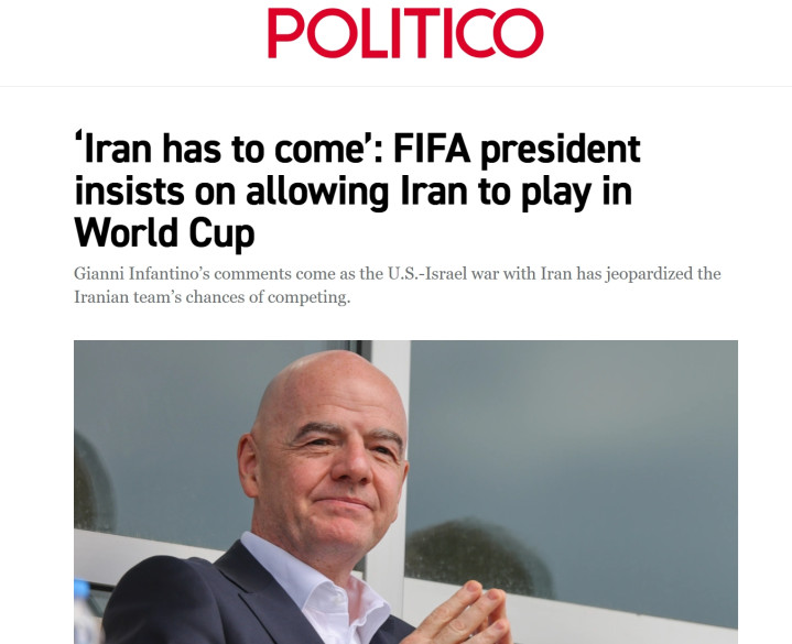 因凡蒂诺表示,他在伊朗与特朗普之间进行的“穿梭外交”,源于他相信体育可以将人们团结在一起,“(伊朗队)实际上是一支相当不错的球队,他们非常希望参赛,而且他们也应该参赛。体育应该置于政治之外。”
